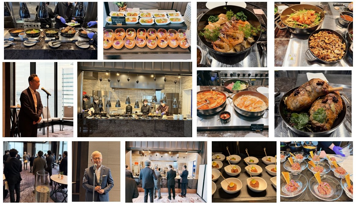 セミナー後のご賞味会は、メズム東京「The Banquet」にて、キュリナリーマイスター(総料理長)・隈元香己氏が手がける特別ブッフェをご提供いただきました。ライブキッチンならではの華やかな料理演出は、「シェフが目の前で仕上げる料理の演出とともに、華やかな美食を贅沢な空間でお楽しみください」という紹介の通り、臨場感にあふれ、参加者の皆様から大変好評をいただきました。